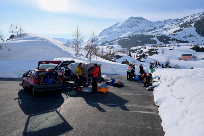 Voici la deuxième édition de ce jaccuzzi pour célebrer la fin de l'hiver entre amis au lac des grenouilles "Hopschusee" au Col du Simplon.