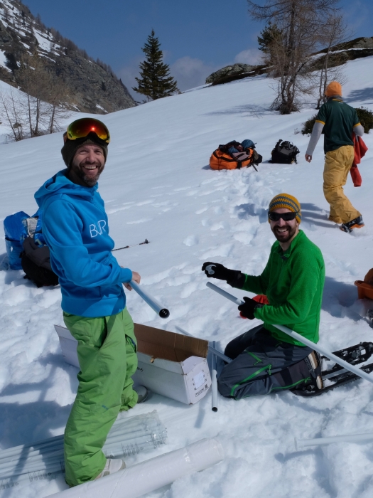 Et on a appris depuis l'année passée! Deux brûleurs au lieu de un pour booster le chauffage, Même que heureusement cette année, le vent habituellement assez fort au col, nous a épargné. Chemin d'accès préparé pour moins perdre des luges en route. Méthodes professionnelles pour la coupe de blocs de neige pour le bar, les murs de protection contre le vent et l'escalier du magnifique toboggan, qui sera l'attraction de l'après-midi.