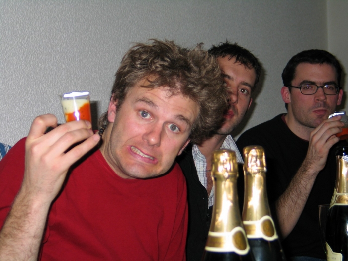 Préparation d'un jacuzzi durant la nuit, à Renens. On accueille Dom avec la fondue au petit matin ! Une journée de folie s'en suivra, avec à chaque activité une fondue..