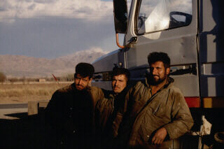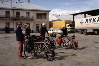EN ROUTE POUR TABRIZLe 10 avril, nous entrons en Iran. Les locaux de la douane sont bondés : colporteurs, pélerins du Daguestan en route pour la Mecque, Iraniens et Turques... et au milieu, cinq Suisses avec leurs vélos qui tentent de faire reconnaître leurs visas. Nous tournons le dos à l'effigie d'Atatürk pour faire face à celle de Khomeiny qui surplombe également ce capharnaüm le plus complet. Etonnament, les formalités ne traînent pas et nous nous retrouvons rapidement sur nos vélos, en route pour Tabriz. Contrairement à l'est de la Turquie, les routes sont excellentes, mais l'état des véhicules et le style de conduite deviennent assez aléatoires avec une utilisation du klaxon plus que généreuse. Le printemps fait enfin son apparition, et la température est agréable pour rouler. A Tabriz, nous faisons la connaissance de Nasser qui travaille dans une petite échoppe. Dans un français parfait, il nous fera visiter sa ville, le Bazaar et les bureaux de change.